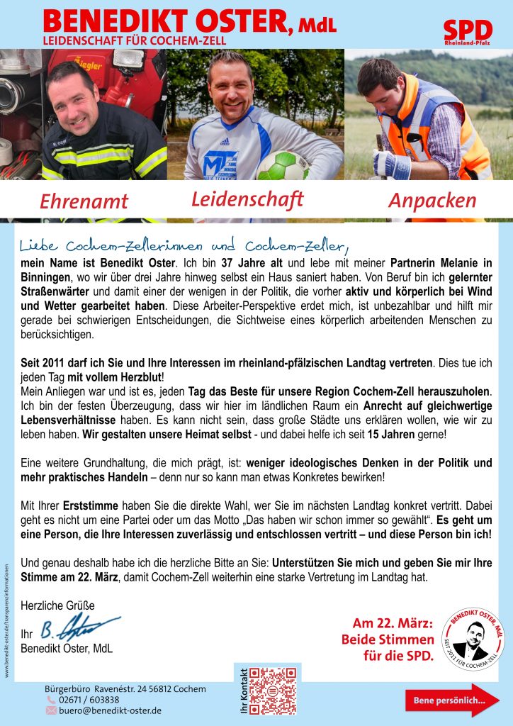 Der Austausch in Ulmen zeigte einmal mehr, wie wichtig der direkte Dialog zwischen Landespolitik und kommunaler Ebene ist. Benedikt Oster dankte dem Innenminister für seinen Besuch und den offenen Austausch mit den Vertreterinnen und Vertretern aus der Region.